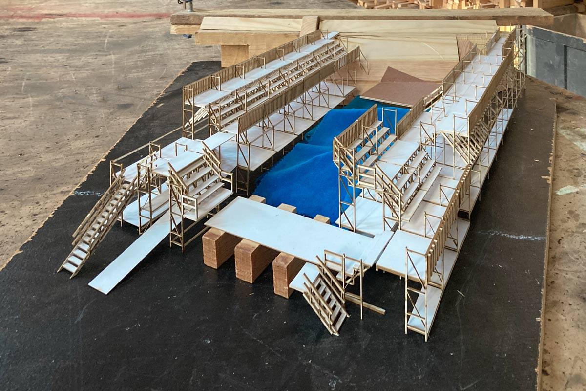 Jozef Wouters, Decoratelier: “FLOW werd gebouwd door vele handen. Om dit mogelijk te maken gingen we voor een modulair ontwerp. In Decoratelier (Molenbeek) vervaardigde een grote groep jongeren uit de buurt wekenlang samen de onderdelen. Daardoor is FLOW meer dan een zwembad. Tijdens en na het bouwen ontstonden gesprekken over publieke ruimte, privacy, politiegeweld en exclusie. Vorig jaar nog werden deze jongeren aan de Belgische kust geweerd, dit jaar bouwen ze zelf een radicaal inclusieve zwemplek. Een waterlichaam waarin en waarrond we misschien weer kunnen samenkomen.”