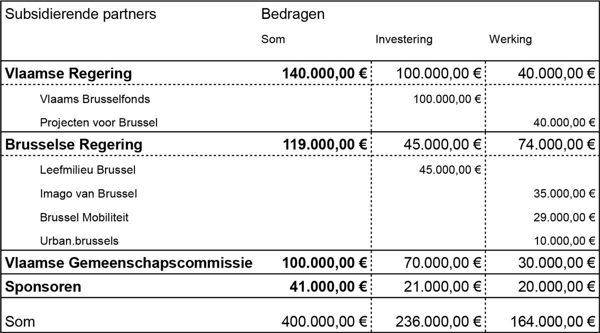 - Brede steun van overheden, administraties, gemeente en sponsors