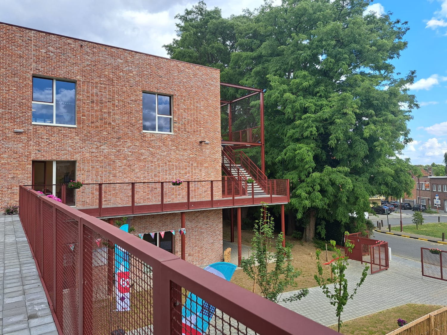 De samenwerking met het consortium DeBuild, aannemer Democo en architectenbureau OSKAR resulteerde in een doordacht gebouw met drie verdiepingen. Een centraal atrium en stalen buitenterrassen verbinden de verschillende niveaus. De tweede verdieping biedt plaats aan een sportzaal en klassen van het 5de en 6de leerjaar, terwijl op de eerste verdieping het kinderdagverblijf en de onthaalklassen zijn ondergebracht.