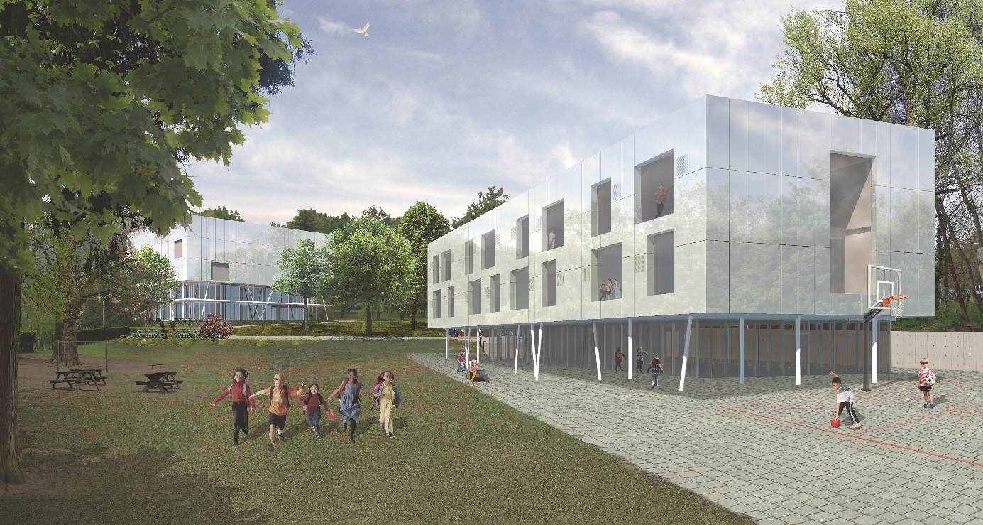 De oude paviljoenen en de modulaire units worden afgebroken. In de nieuwbouw is plaats voor 20 klaslokalen, 8 voor de kleuters en 12 voor de lagere school. De werken starten in het augustus 2021 en zullen ongeveer twee jaar duren.