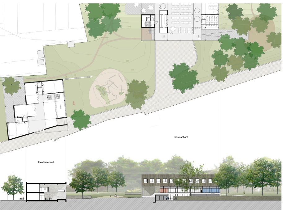 De gemeente Jette bouwt een nieuw schoolgebouw op de site van basisschool Poelbos. Deze nieuwbouw vervangt de oude en versleten laagbouw op de site. Enkele kleuterafdelingen van het gemeentelijk onderwijs krijgen hier een plaats. Bovendien komen er 144 plaatsen bij in het lager onderwijs. Daardoor zullen meer leerlingen de volledige basisschool op de site kunnen doorlopen en krijgt de school een totale capaciteit van 480 plaatsen.